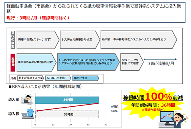 「前年度にBPRで業務分析を進める中、委託事業者からRPAとAI-OCRの活用提案があり、業務改善と時間削減の効果が見込めると判断しました」と森下氏は振り返る。