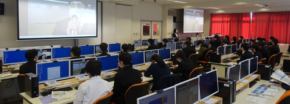 授業は建築科と電子機械科との合同で行われ、AGS社員2名が講師を担当しました。1月に行われた1回目の授業では、WinActorの基本的な操作方法と自動化フローの作成までを、本稿で採り上げる2回目では、より仕事に密接した内容のシナリオ作成が題材となっています。冒頭、NTTデータの担当者がRPAの具体的な利用例を解説し、その後は生徒達から「どのようなことがRPAで自動化できそうか」を考えてもらう時間を取りました。