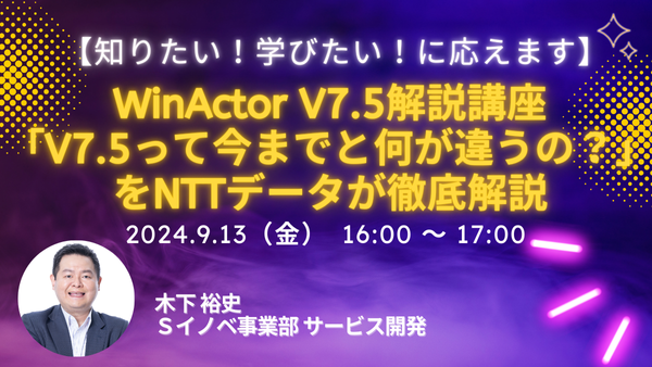 WinActor V7.5解説講座~「V7.5って今までと何が違うの?」をNTTデータが徹底解説