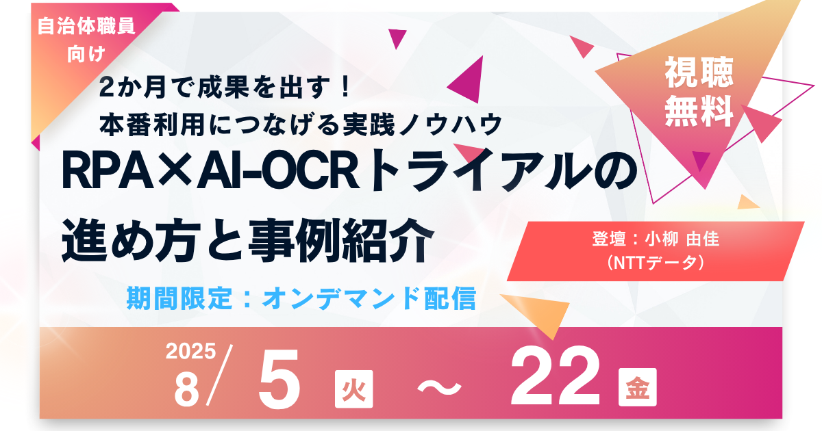【オンデマンド配信決定】RPA×AIOCRトライアルの進め方と事例紹介 〜2か月で成果を出す!本番利用につなげる実践ノウハウ〜