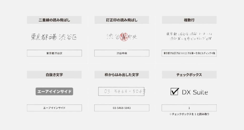 手書き文字や活字、FAX、傾いた画像データまで、