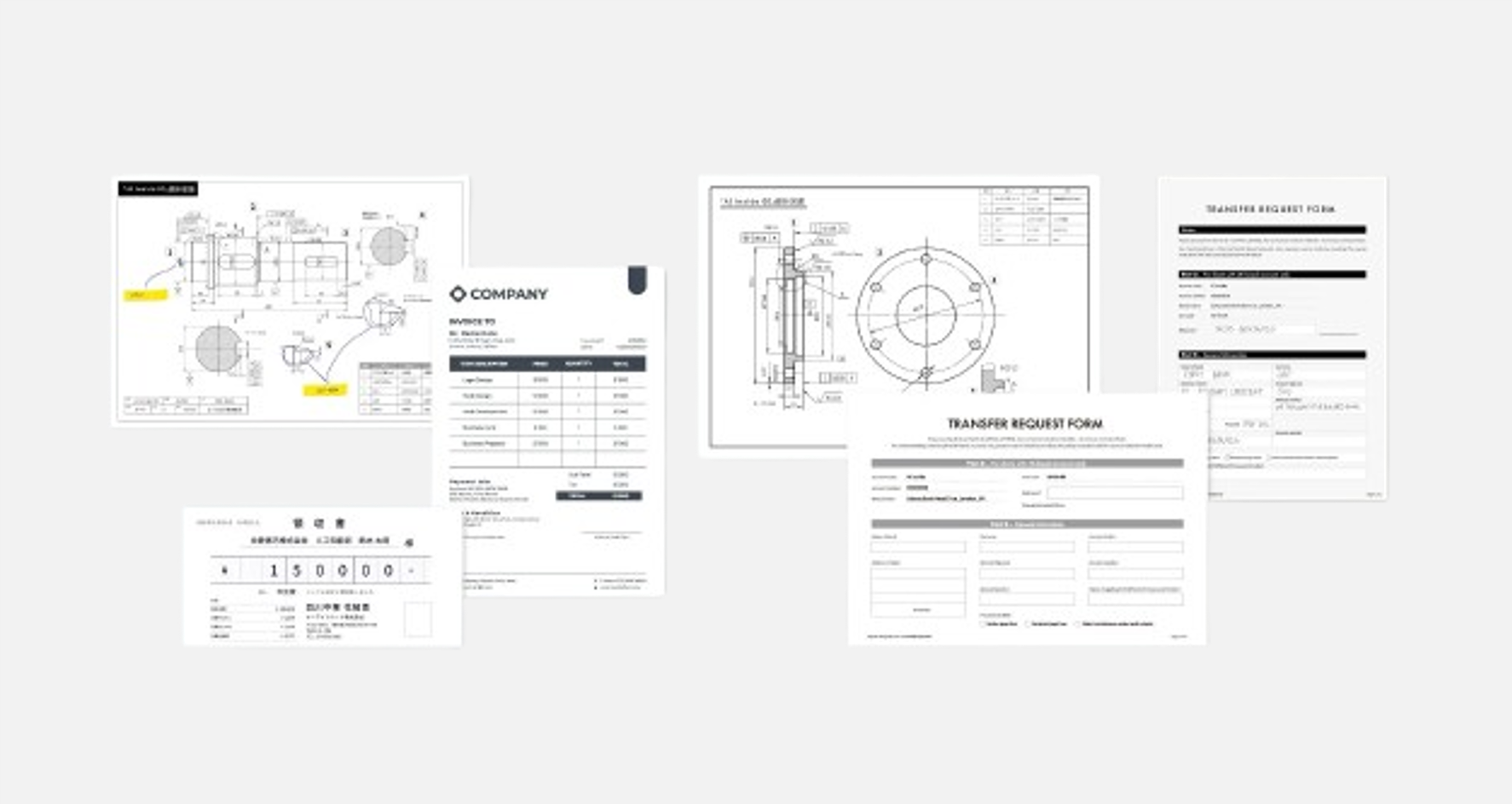 請求書、契約書、注文書、図面など、