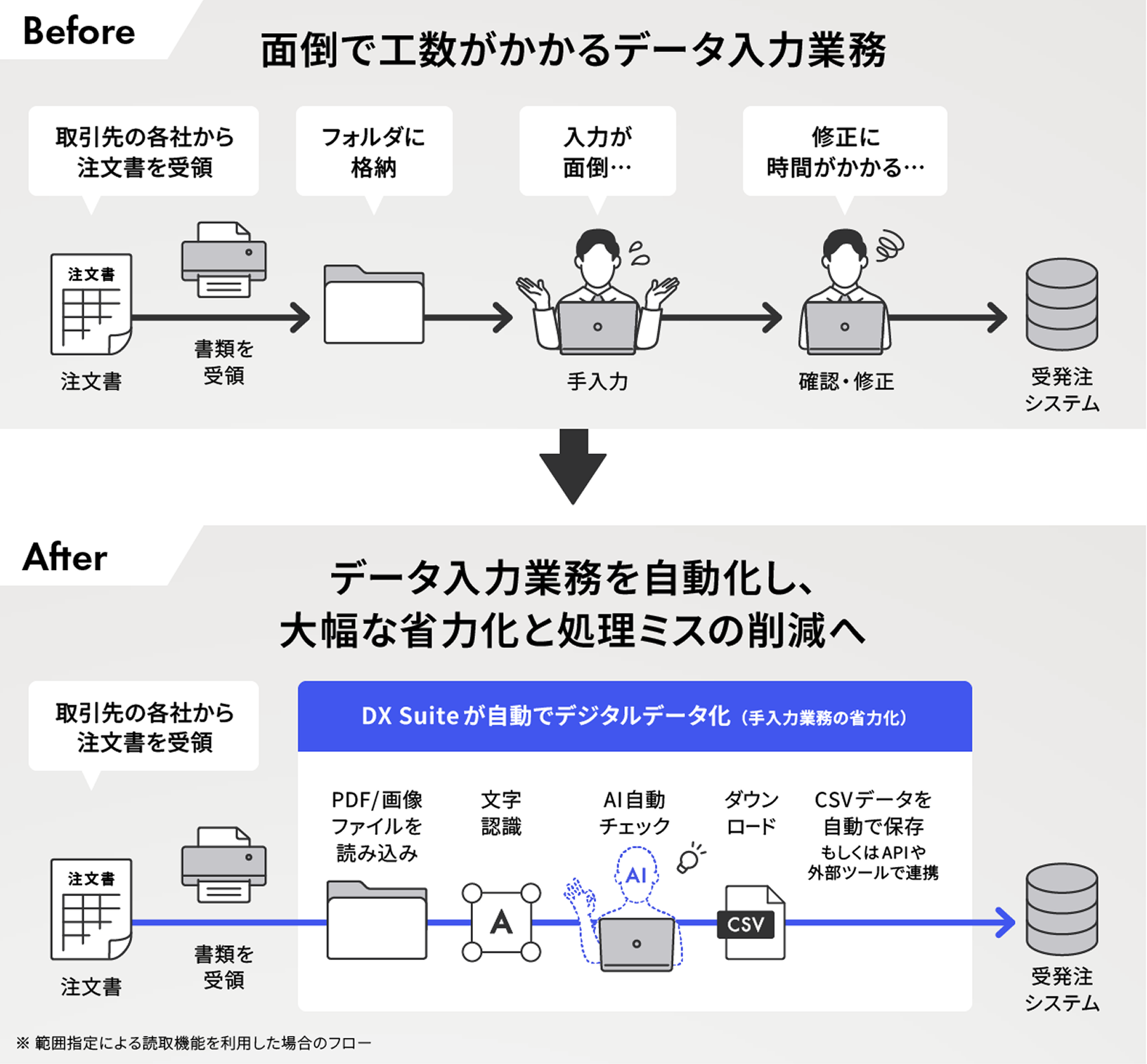 フォーマットが違っても、AIが自動で判断・読み取り