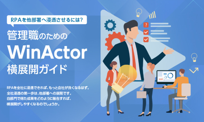 WinActorで現場の業務効率は上がったけれど、自部署だけで完結するのはもったいない…。本資料では、WinActorを現場から社内に広めるために必要な情報とテクニックを解説していきます。
