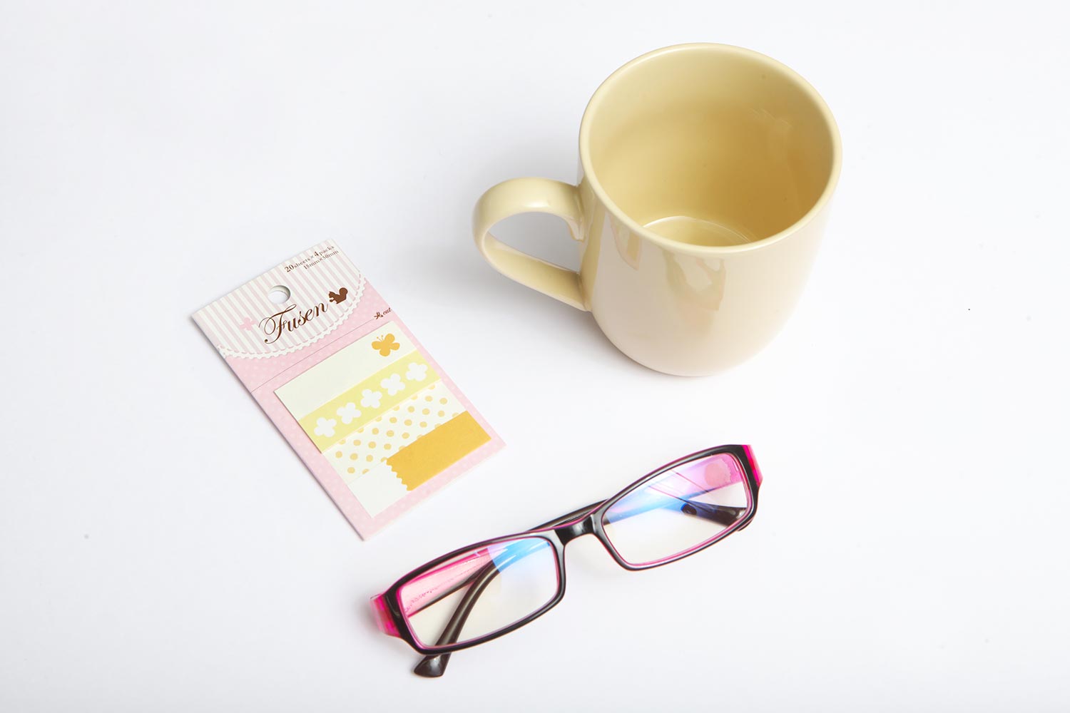 PCメガネ、マグカップとキャラクター付箋。どれも、日々の快適な業務のためには欠かせないアイテムです。